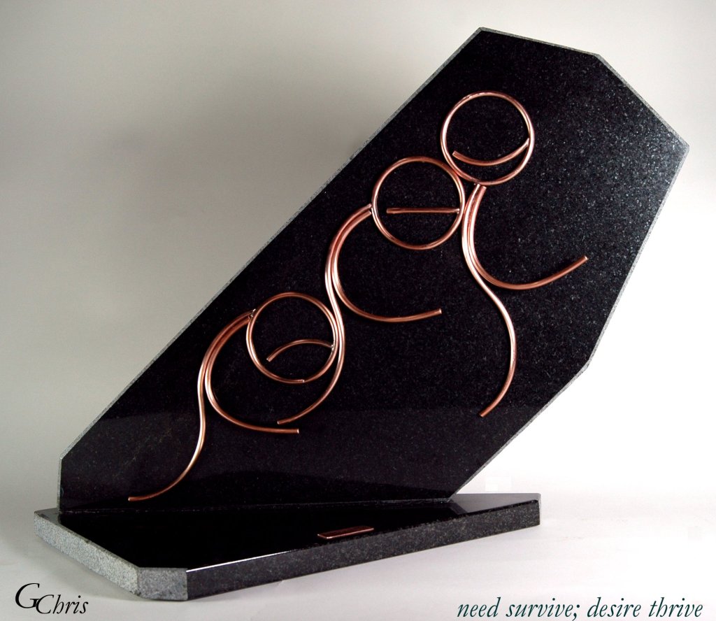 need survive; desire thrive 1′ x 1′ metal and stone stabile