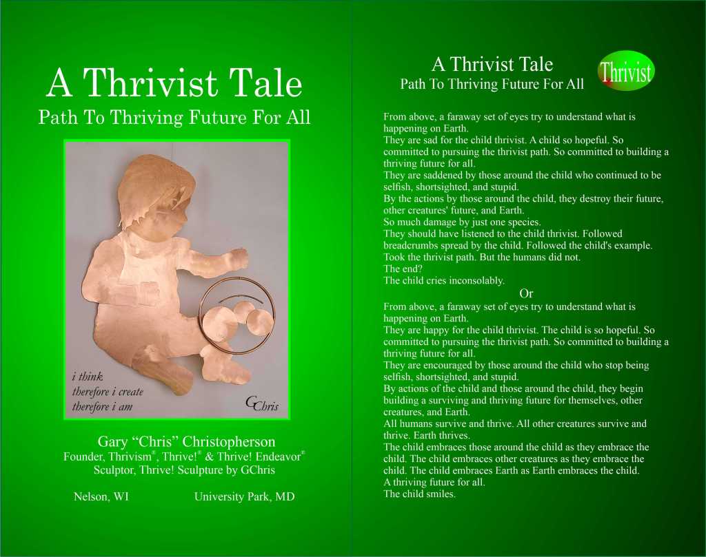 This is the symbol for Thrivism – All Thrive Forever. This is the symbol in the form of a Thrive! Sculpture by GChris (Gary “Chris” Christopherson). www.GChris.com